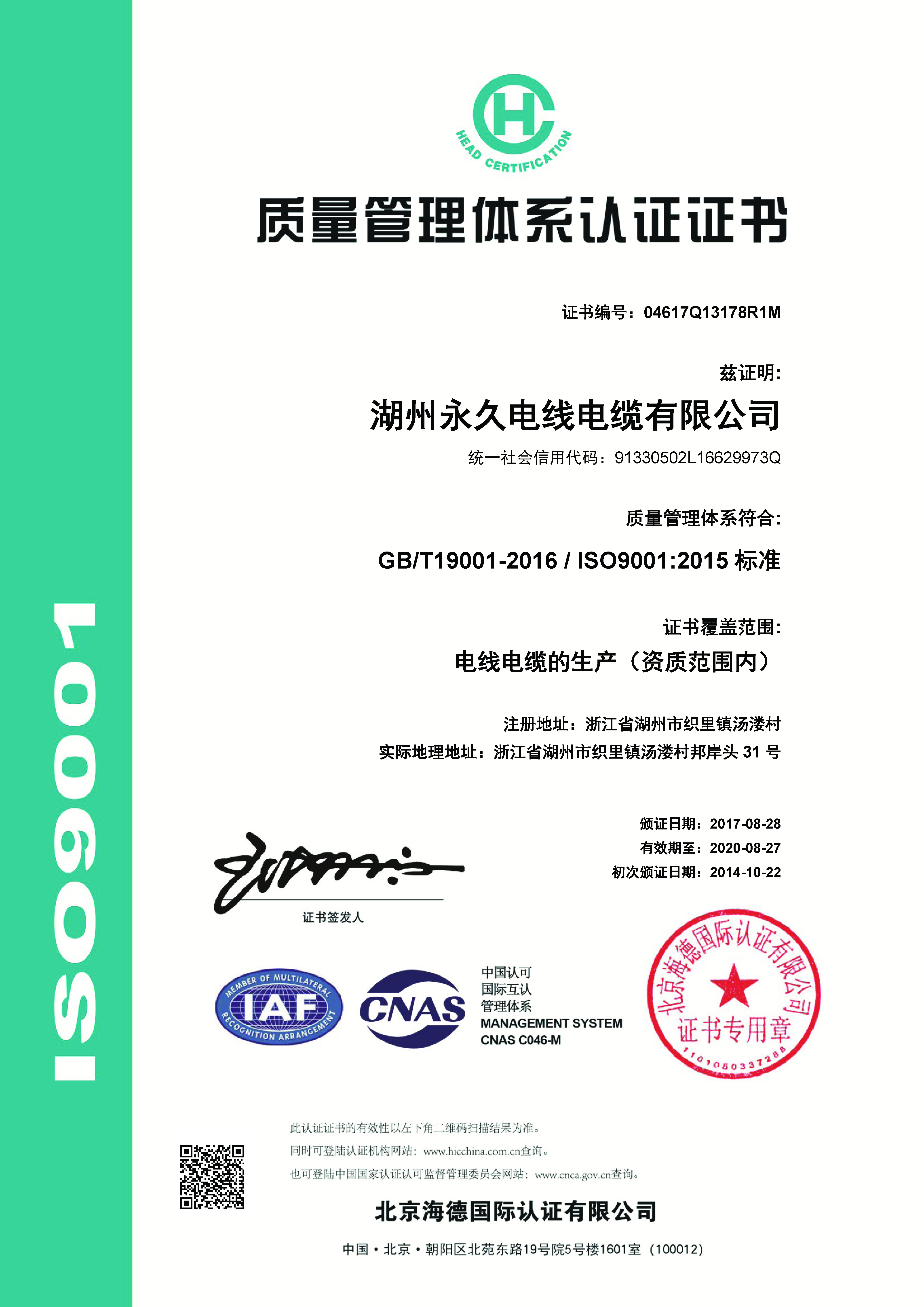 2014年級(jí)獲得ISO9001證書, 并獲得湖州名牌產(chǎn)品--“久永” 2015年, “久永”商標(biāo)獲著名商標(biāo)的榮譽(yù)稱號(hào)