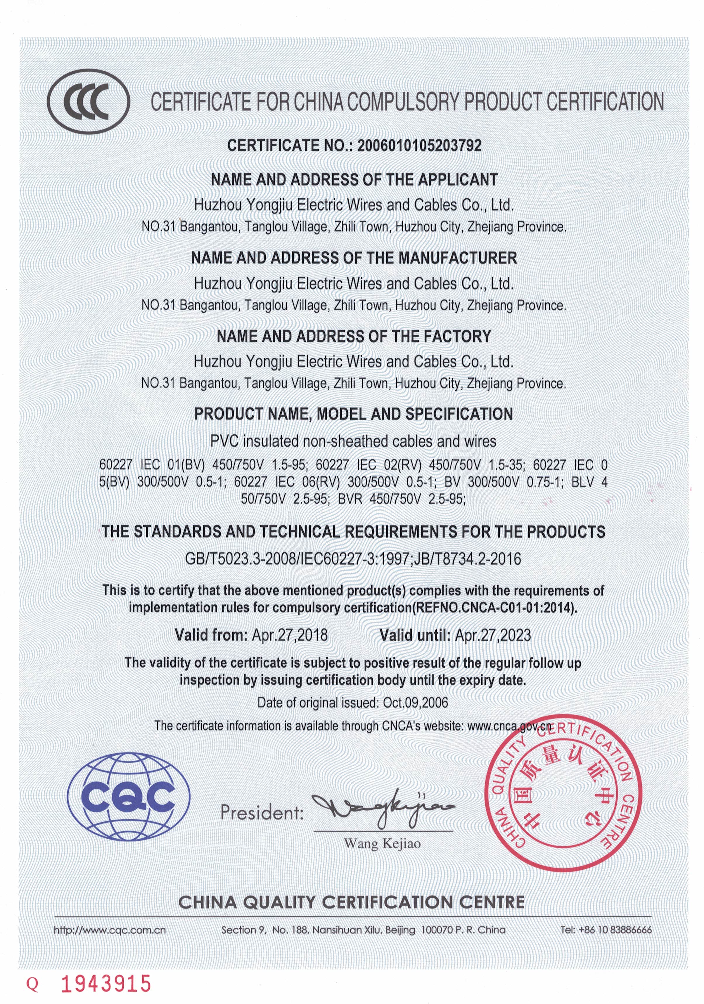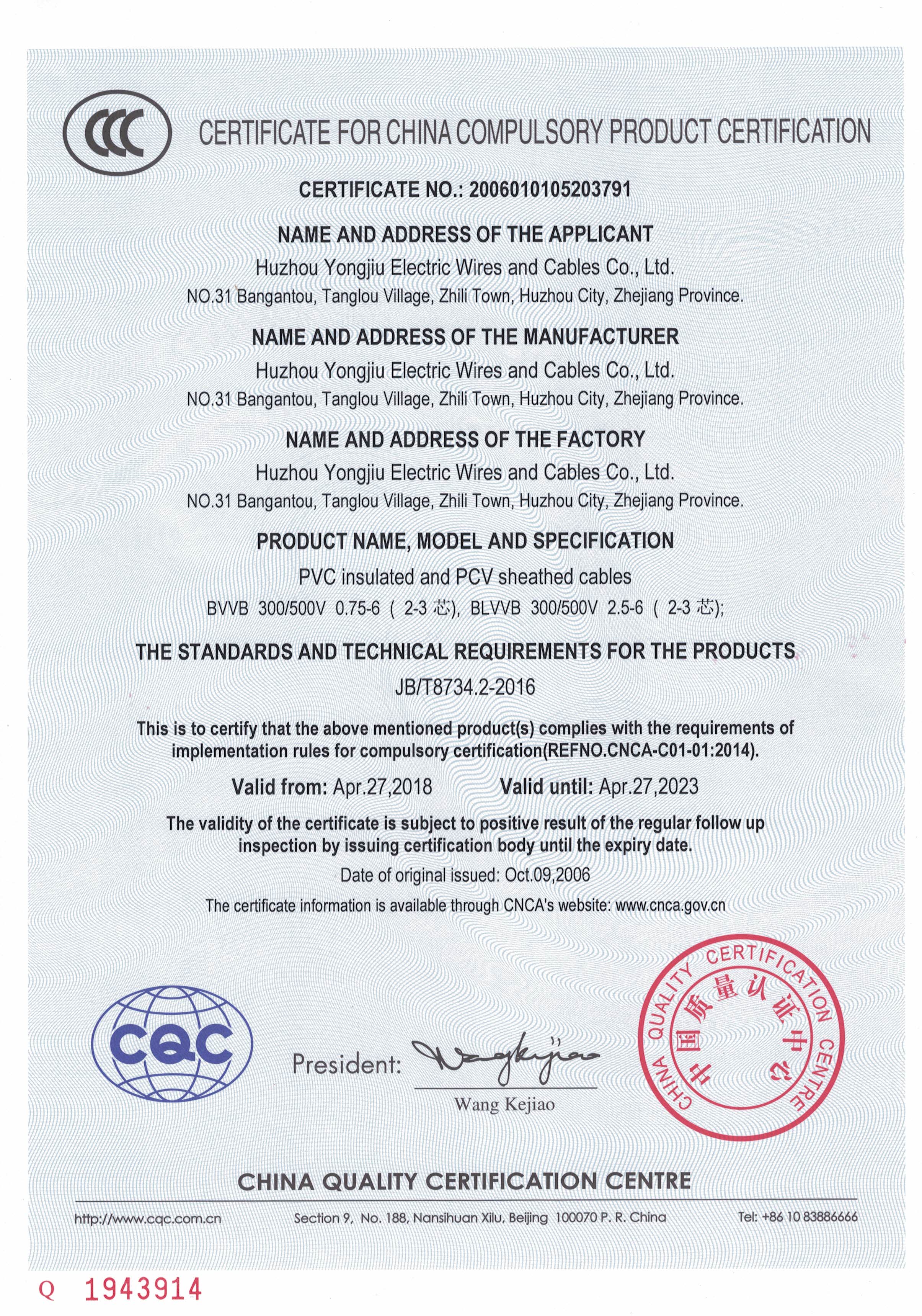 2005年, 在王阿志董事長的帶領(lǐng)下,經(jīng)過10年的不斷的努力和堅(jiān)持,浙江永久電纜有限公司--正式注冊(cè)成立。