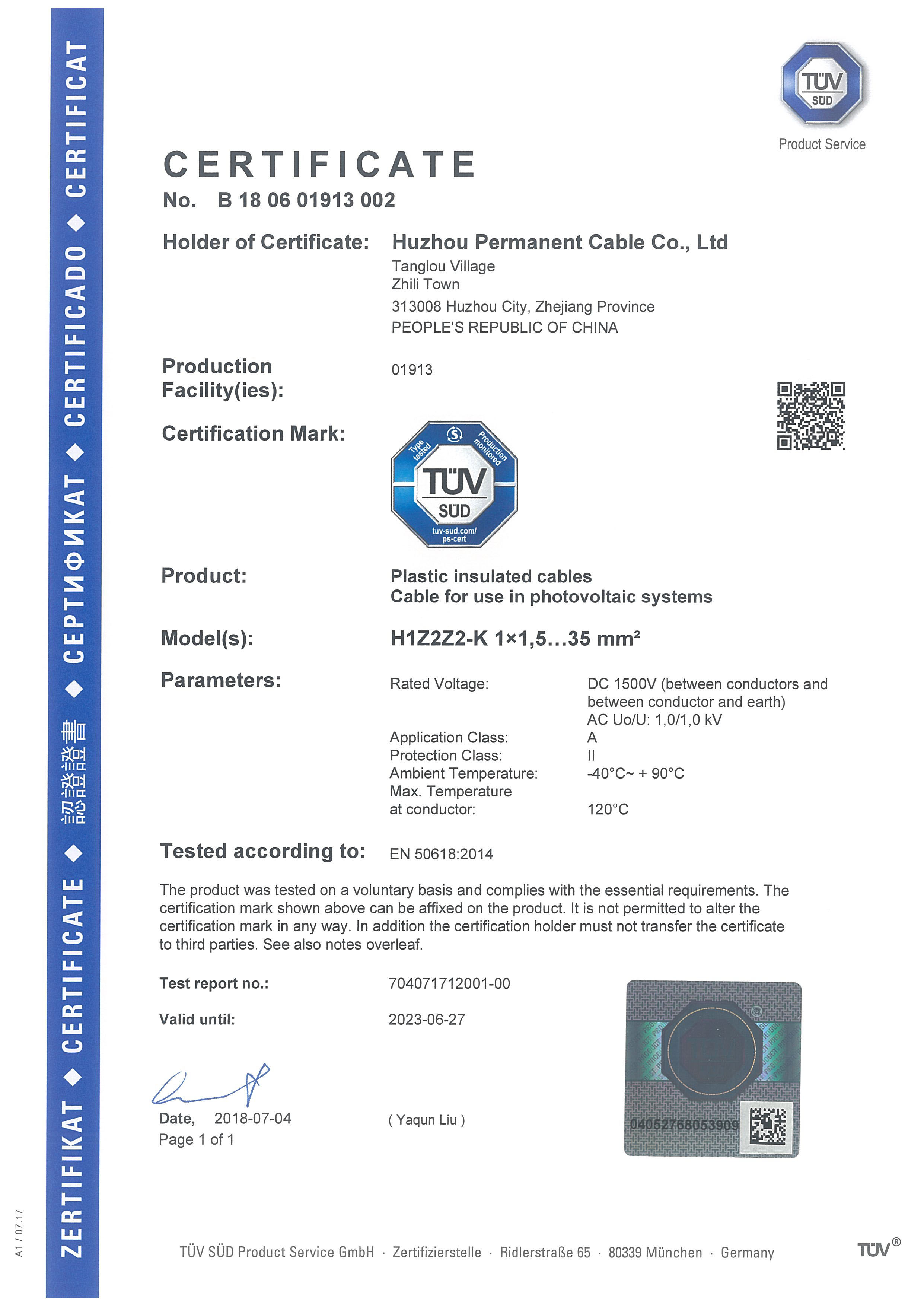 2016年--2018年,我司先后獲得了CE證書和TUV證書, 通過了SGS的第三方驗(yàn)廠。2017年-2018年,2年的時(shí)間內(nèi),在新能源領(lǐng)域--光伏電纜, 取得了重大進(jìn)步。
